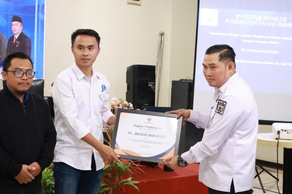 Inews Batulicin- Pemerintah Kabupaten (Pemkab) Tanah Bumbu memberikan penghargaan kepada pelaku usaha yang dinilai telah berkontribusi besar dalam mendorong roda perekonomian daerah. Dua perusahaan besar, yakni PT Jhonlin Baratama dan PT Kodeco AgroJaya Mandiri, secara resmi menerima Piagam Penghargaan Realisasi Investasi Tertinggi Tahun 2025.